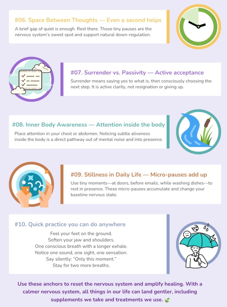 • Slow, predictable rhythm acts like a metronome for the autonomic nervous system, shifting it toward regulation and lowering limbic reactivity.