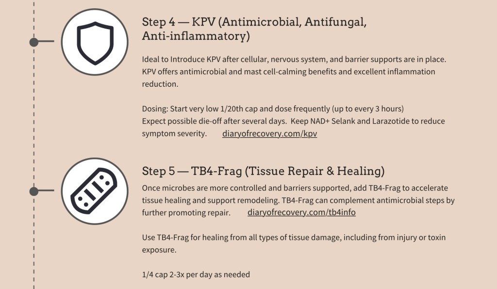 - TB4‑Frag Deep‑repair signaling for toxin damage, injured tissue (including the gut), post‑viral issues and more